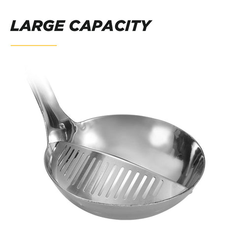 • Filter holes design, can effectively filter out water and oil.Deep scoop head,fit for holding soup, porridge,hot cocoa,rice,noodle, hotpot,etc.
